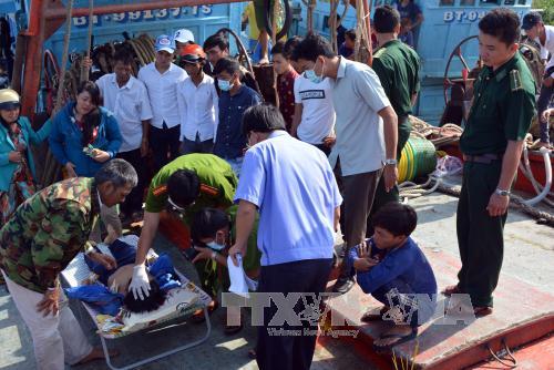 Ngày 24/10, Đồn Biên phòng Cửa Đại, huyện Bình Đại, tỉnh Bến Tre cho biết: Trạm Kiểm sát biên phòng Bình Thắng (thuộc Đồn Biên phòng Cửa Đại) phối hợp cùng cơ quan Cảnh sát điều tra Công an huyện Bình Đại, Bến Tre vừa bàn giao thi thể nạn nhân V.V.H. (sinh năm 1991, ấp 1, xã Bình Thắng, huyện Bình Đại) bị tử vong do ngạt khí độc dưới hầm tàu cá về cho gia đình mai táng.
