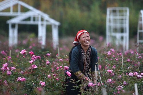 Đi sâu hơn chút nữa, phía sau khu chợ Tây Bắc, cả một vườn hồng cổ Sa Pa đang đồng loạt nở. Hồng cổ Sa Pa vốn là loài hồng quý, được giới chơi hoa săn đón. Để quy tụ được vài trăm gốc hồng trong khu vườn này cũng không dễ dàng.