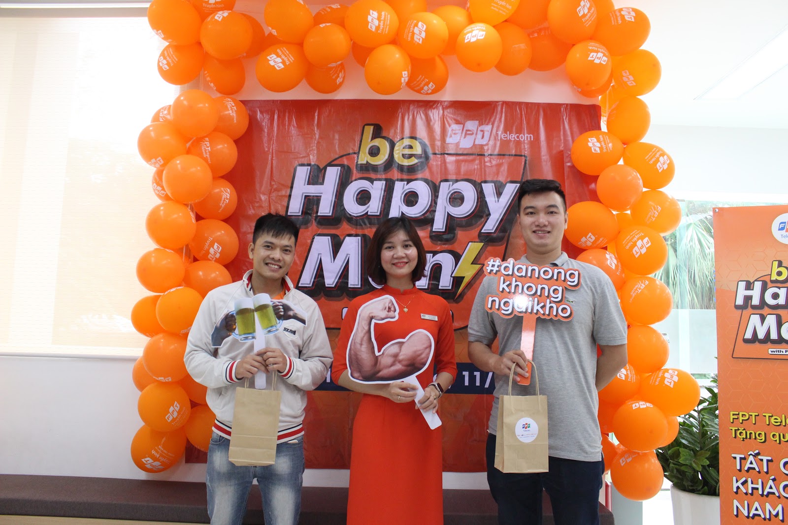 Ngày hôm đó, không chỉ mình chú Tâm, anh Long, anh Sơn là người được nhận quà. Bởi ngoài món quà đặc biệt cho Khách hàng lâu năm nhất, FPT Telecom cũng dành những món quà ý nghĩa, thiết thực cho tất cả Khách hàng nam đến giao dịch trực tiếp.