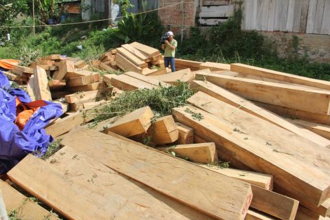 Một phần số gỗ pơ mu tang vật. Ảnh: Báo Quảng Nam |