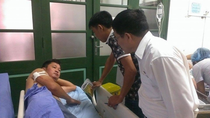 Nhà báo Nguyễn Ngọc Quang tại bệnh viện sau khi bị các đối tượng truy sát - Ảnh: báo Giao thông |