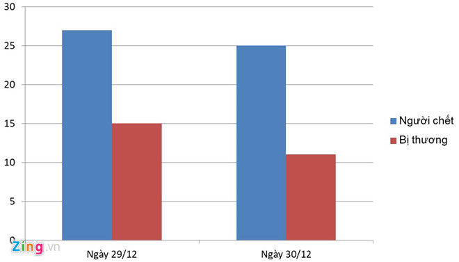 Số liệu thống kê người chết và bị thương do tai nạn giao thông trong 2 ngày nghỉ lễ. Ảnh: Zing.vn |