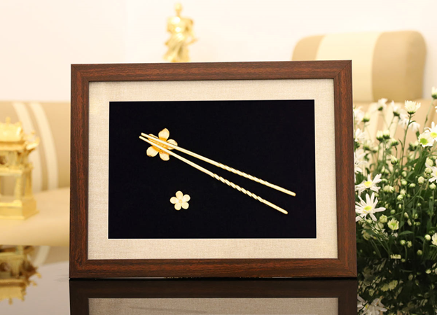 Tranh đôi đũa mạ vàng với hàm ý gia đình hành phúc, cơm lành canh ngọt |
