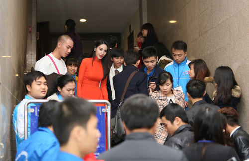 Nữ ca sĩ Thủy Tiên là một trong những người trình diễn cuối cùng trong chương trình "Khát vọng trẻ - Tổ quốc gọi tên" tối qua tại Hà Nội. Tuy nhiên sự xuất hiện của cô vẫn nhận được rất nhiều sự ủng hộ, cổ vũ của người hâm mộ. Rất nhiều fans vây quanh Thủy Tiên sau khi cô kết thúc tiết mục để xin chữ ký và chụp hình chung.