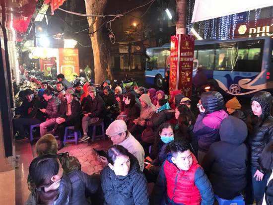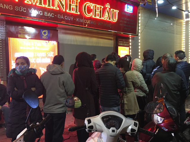 5h sáng 25/2, tại nhiều cửa hàng vàng ở Hà Nội, nhiều khách hàng đã xếp hàng chờ đến giờ mở cửa để mua vàng ngày vía Thần Tài.