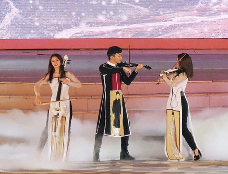 K?t th�c ch??ng tr�nh, ca kh�c T? Nguy?n vang l�n v?i ti?ng ?�n violin r�o r?t c�ng s? xu?t hi?n c?a t?t c? c�c ngh? s?, nh? m?t l?i tri �n d�nh cho ??t m?, d�nh cho Festival Hu? 2016.