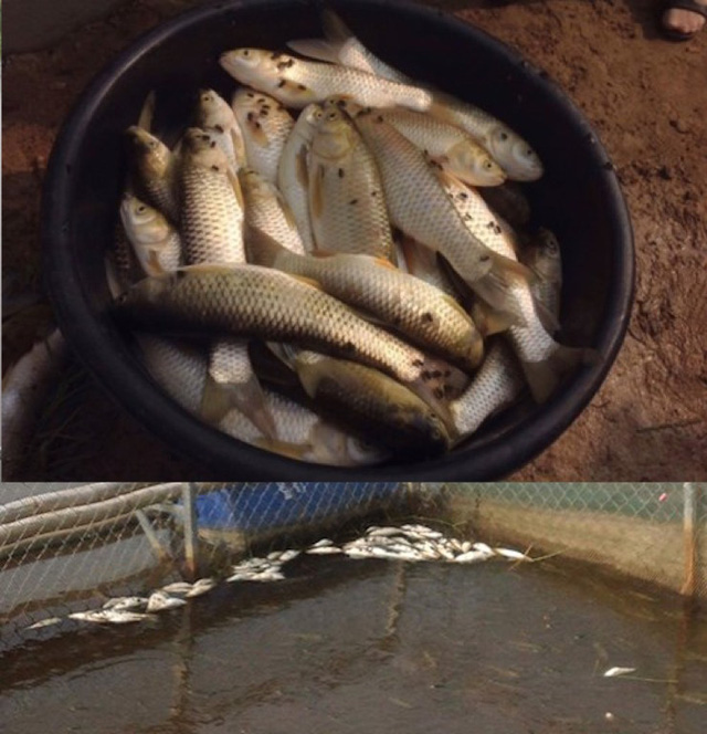Theo ông Chu Văn Thanh (63 tuổi) trú xóm 6 xã Diễn Hạnh, huyện Diễn Châu, khoảng 10h ngày 17/9, tại 3 lồng nuôi cá của gia đình ông bỗng xuất hiện cá chết trắng.