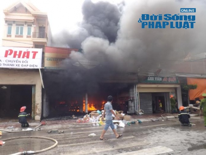 Phát hiện sự việc, chị Thủy (chủ cửa hàng) đã hô hoán mọi người xung quanh đến dập lửa, tuy nhiên do hàng hóa trong nhà đều là những vật dụng dễ cháy nên ngọn lửa bùng lên và lan khắp gian hàng.
