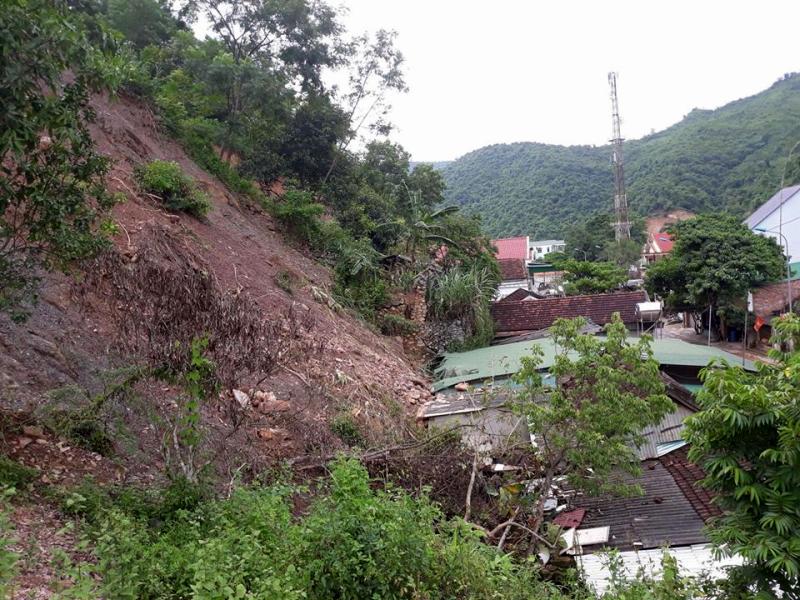 Khoảng 19h45 ngày 25/8, một lượng đất lớn từ trên núi bất ngờ sạt lở xuống dãy nhà dân ở phía dưới. Vụ sạt núi đã khiến ngôi nhà của gia đình ông Trần Văn Thái bị đè sập hoàn toàn. Nhiều ngôi nhà lân cận cũng bị hư hỏng nghiêm trọng. May mắn do phát hiện nguy cơ sụt trượt từ trước nên toàn bộ dân cư sinh sống ở đây đã được di dời đi nơi khác.