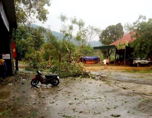 Do bị ảnh hưởng của lốc xoáy nên hàng loạt cây cối, hoa màu bị gãy đổ, nhiều nhà dân bị tốc mái.