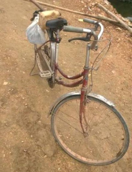 Bên cạnh thi thể là một chiếc nón lá, chiếc xe đạp cũ chở phía sau một chiếc xẻng đào đất và chiếc can nhựa và một ít tư trang cá nhân.
