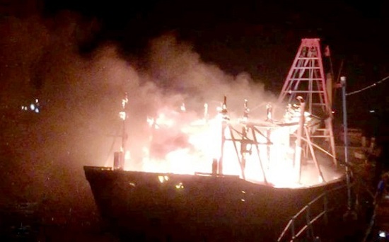Theo thông tin từ UBND xã Quỳnh Lập (TX.Hoàng Mai, Nghệ An), một tàu đánh cá trên địa bàn xã bị cháy khi đang trên đường vào đất liền.