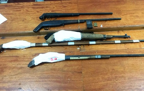 Tại hiện trường, lực lượng chức năng đã thu giữ tại chỗ 1 khẩu súng Kbin, 2 viên đạn Kbin (trong đó 1 viên đã lên nòng), 1 hộp tiếp đạn và 4 khẩu súng tự chế.