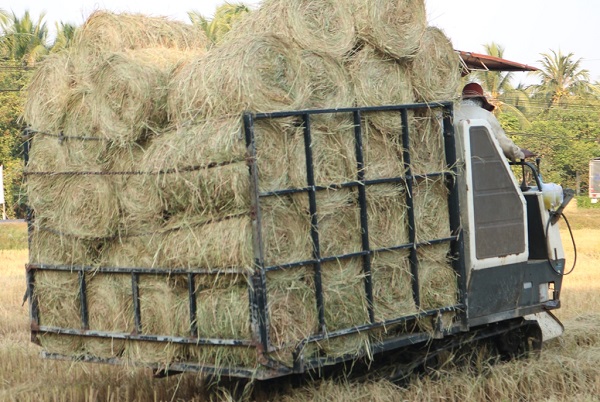 Rơm được cuộn gọn gàng nên có thể sử dụng ghe hoặc xe tải để vận chuyển đến các địa điểm tiêu thụ. |