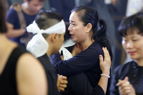 Nghệ sĩ Bích Hằng nghẹn ngào khóc, chia buồn cùng gia đình. |