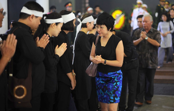Nghệ sĩ Thanh Hoa đến tiễn biệt cố nhạc sĩ lần cuối. |