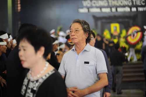 Danh hài Tự Long cũng đến để tiễn nhạc sĩ về nơi suối vàng. |