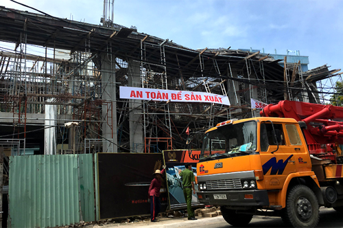 Vợ ông là bà Dương Thanh T. bị hệ thống cọc thép đè chặt lên ngực, tay, vai và khối bê tông tươi đổ khắp người.