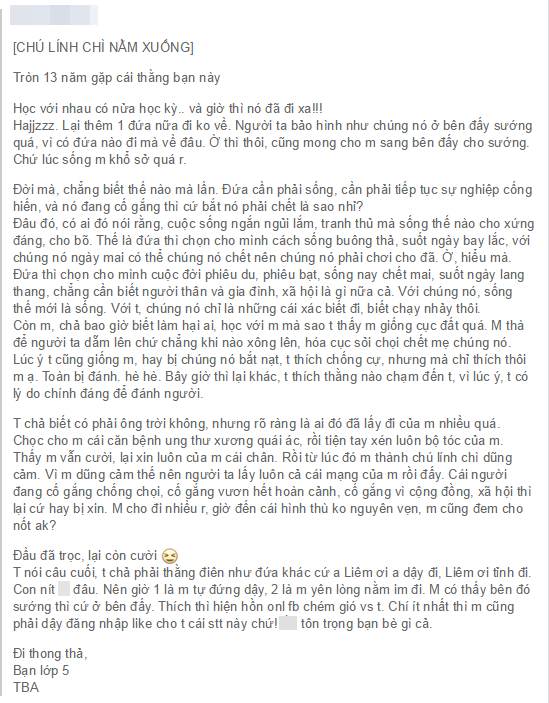 Tâm sự rất xúc động của bạn học cũ dành cho Liêm. |