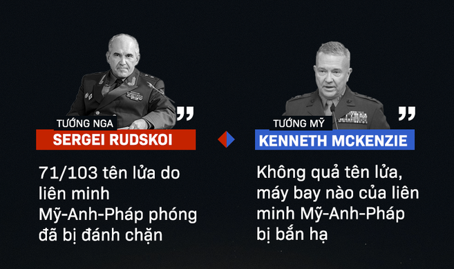 Nga cho rằng Syria bắn hạ được 71 trong số 103 quả tên lửa phóng về Syria nhưng Washington cho rằng Syria 'tung tin giả'.