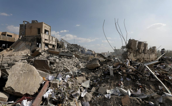 Một cơ sở tình nghi cất trữ vũ khí hóa học của Syria bị tên lửa hành trình của Mỹ và đồng minh Anh - Pháp phá hủy - Ảnh: Reuters. |