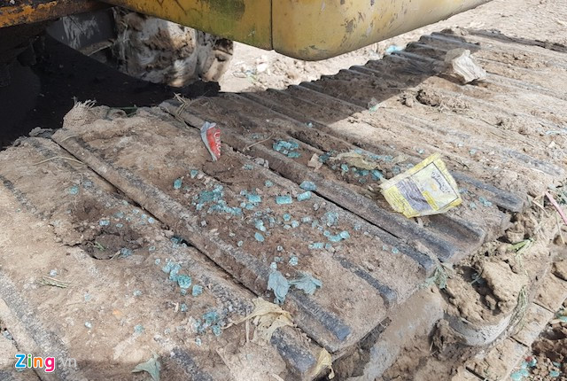 Kính xe cuốc vỡ vụn sau vụ nổ. Ảnh: Zing.vn |