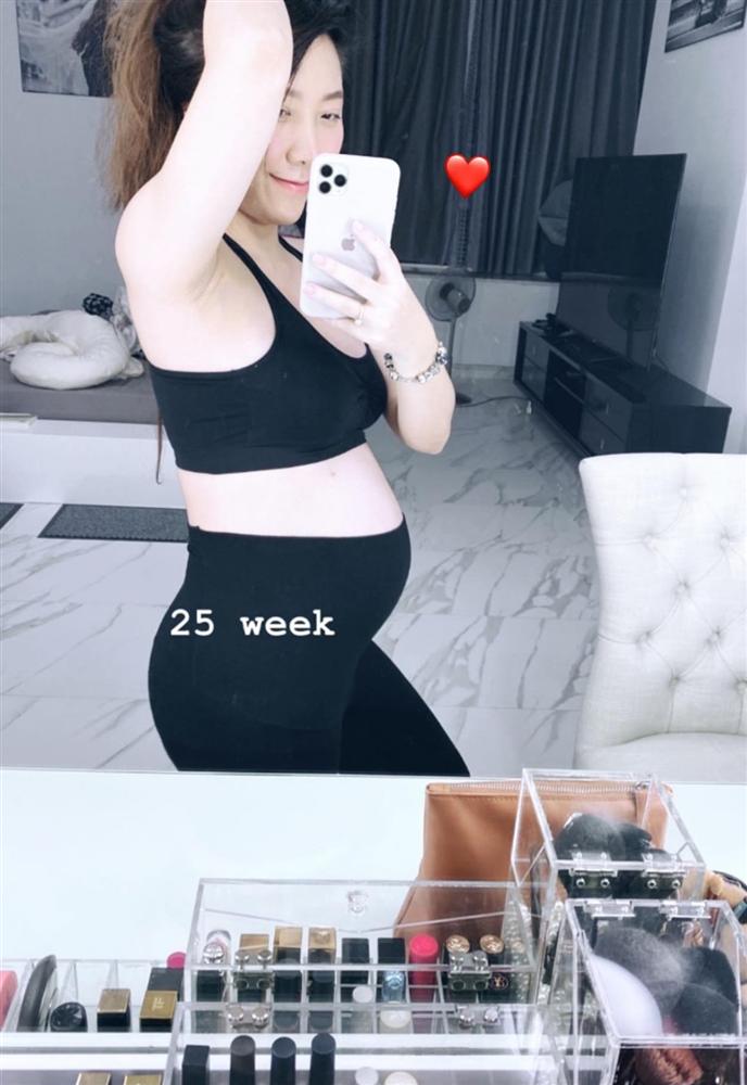 Huỳnh Mi tự tin khoe bụng bầu ở tuần 25. |