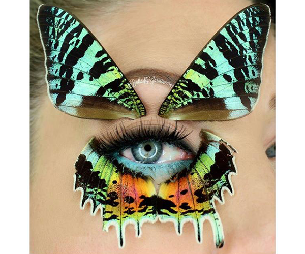 Thay vì trang điểm với những lớp thông thường, nữ nghệ sĩ người Mỹ đã tự tạo cho mình dấu ấn riêng khi làm nên những tuyệt phẩm từ côn trùng.