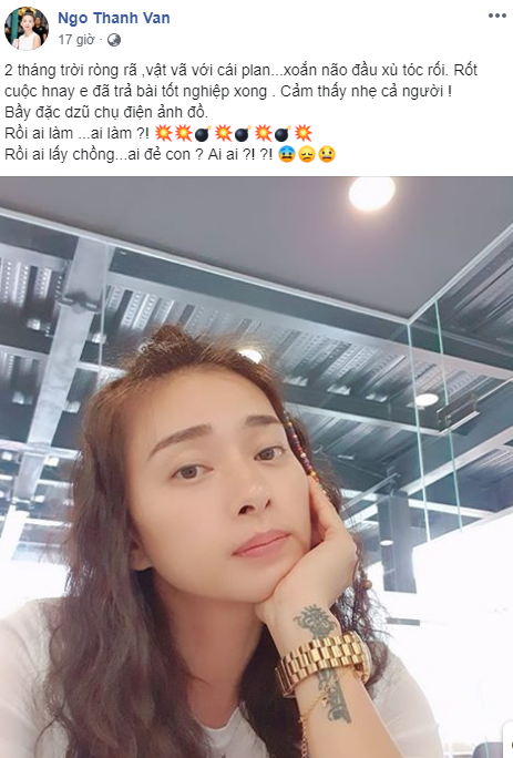 Ngay sau khi đăng tải dòng trạng thái đã có 16 nghìn lượt quan tâm, hàng trăm lượt bình luận. Một tài khoản hài hước hỏi, "Chị giỏi như vậy mà chị không để lại hậu thế dòng giống của mình sau này, là thế hệ sau có thể mất đi một người giỏi nữa đấy". Ngô Thanh Vân đáp lại, "Thì phải gác rồi mới kiếm chứ . Cứ cắm đầu học r làm... Đâu ra ?". Có thể thấy, Cô Ba Sài Gòn của chúng ta cũng đang sốt sắng chuyện chồng con.