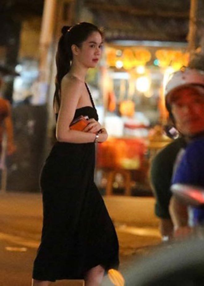 Với bức hình chụp khi bước sang đường, vóc dáng của Ngọc Trinh không quá sexy như trong những bộ hình cô chia sẻ với truyền thông. Tuy nhiên nhiều người cho rằng lý do Ngọc Trinh bị "dìm hàng" trong bức hình này là do trang phục. |