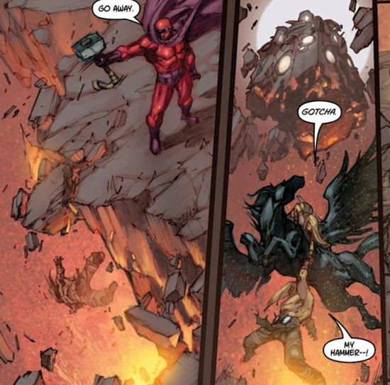 Trong "The Ultimate 3" số 5 (2008), sau khi cả hai người con là Quicksilver và Scarlet Witch đều đã chết, Magneto - dị nhân cấp 5 hùng mạnh của X-men với khả năng điều khiển kim loại đã sử dụng quyền năng phi thường này để đoạt lấy cây búa Mjolnir từ tay Thor.