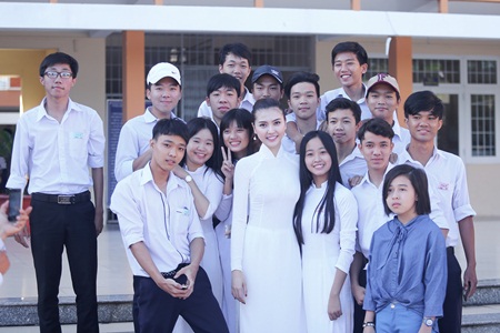 (ĐSPL) - Vừa qua, “Nữ hoàng sắc đẹp toàn cầu 2016” Ngọc Duyên đã trở về trường THTP Phú Mỹ, Vũng Tàu để thăm thầy cô cũng như trao 15 suất học bổng cho học sinh nghèo hiếu học. Đây cũng là ngôi trường mà Ngọc Duyên đã gắn bó trong khoảng thời gian học trung học của mình.