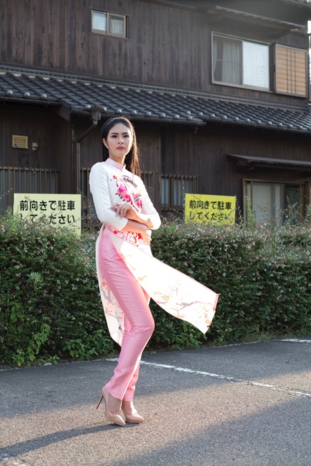 Sau khi kết thúc các hoạt động, Ngọc Hân tranh thủ đưa bố mẹ đi khám phá xứ sở hoa anh đào. Cô cũng ghé thăm Kyoto để chụp bộ hình bộ sưu tập áo dài mới. Hoa hậu tâm sự, bộ sưu tập Geisha với những họa tiết đặc trưng của Nhật được ứng dụng công nghệ in kỹ thuật số với phần cổ áo cách điệu từ chiếc kimono truyền thống của đất nước mặt trời mọc.