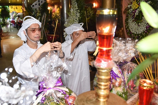 Ngọc Sơn cùng hai em trai Ngọc Hải, Ngọc Hà và cháu trai cúng di quan cho cha. Ông Phạm Ngọc Thanh qua đời ngày 13/6, hưởng thọ 92 tuổi.