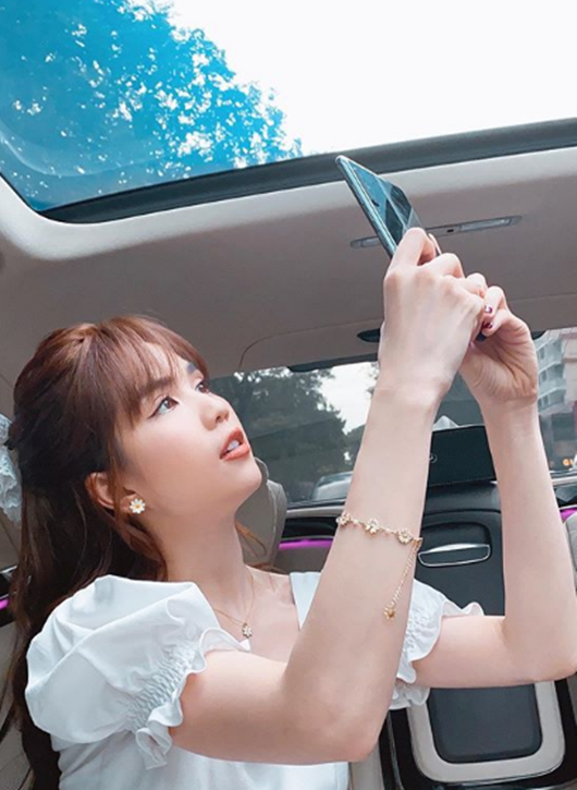 Cô chia sẻ nghịch ngợm: "Em hơi con nít. Nhưng mà em biết yêu anh". |
