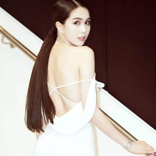 Vòng eo con kiến cùng tấm lưng trần trắng ngần gợi cảm của Ngọc Trinh được phô diễn một cách hoàn hảo nhờ chiếc đầm trắng đầy tinh tế mà cô vừa diện.