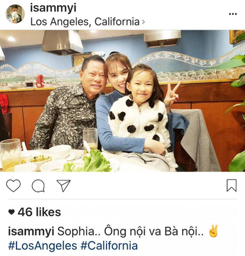 Hôm qua, con trai tỷ phú Hoàng Kiều - ông Sammy Hoàng đã đăng tải trên tráng cá nhân một bức ảnh Ngọc Trinh chụp cùng với cha và con gái anh kèm lời chú thích: “Sophia, ông nội và bà nội“.