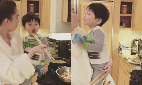 Vừa mới đây, Ngọc Trinh cũng đăng tải clip cô bế cháu trai của tỷ phú Hoàng Kiều và đút cho cậu bé ăn rất thành thục, sau đó cậu bé còn rất thân thiết hôn vào môi người đẹp.