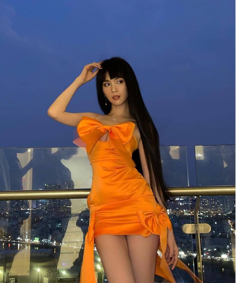 Theo hình ảnh được chia sẻ, người đẹp gốc Trà Vinh được tạo hình như một nàng búp bê Nhật Bản, bộ váy cam khéo léo khoe ra những đường cong hoàn mỹ của "nữ hoàng nội y".