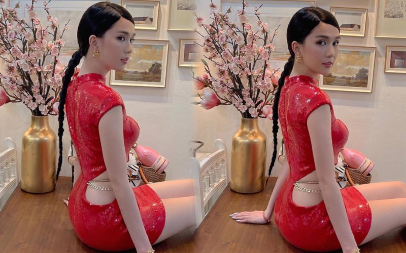 Cách đây ít ngày, Ngọc Trinh cũng khiến dân tình choáng váng vì không ngại ngần khoe vòng eo nhỏ xíu đáng ngưỡng mộ trong bộ váy sườn xám cách tân, khoét eo trong hình ảnh mới nhất khi người đẹp đi chúc Tết.