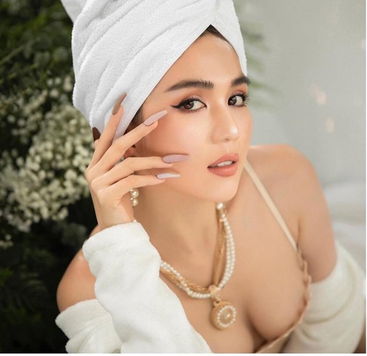 Ngọc Trinh vừa tung ra bộ ảnh với nội y màu nude cùng áo choàng tắm vừa gợi cảm vừa sang chảnh hết nấc. |