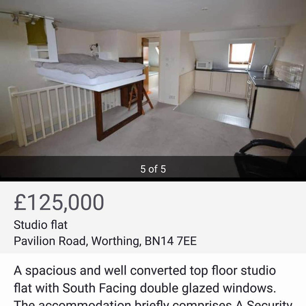 Một ngôi nhà ở Worthing, West Sussex (Anh) đang được rao bán trên trang bất động sản onthemarket.com với giá 125.000 bảng Anh ( khoảng 3,87 tỷ VNĐ).