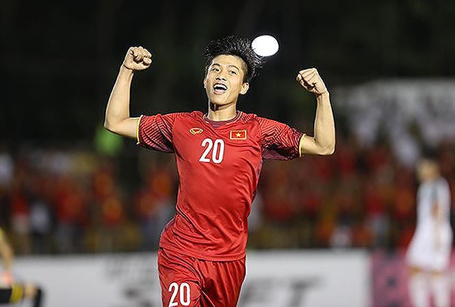 Phan Văn Đức - một trong hai người lập công trong trận bán kết lượt đi tại Philippines nhận mức lương hàng tháng khá khiêm tốn. Ảnh: Tiền Phong. |