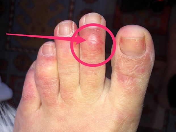 Triệu chứng mới được các bác sỹ gọi là "ngón chân Covid" do ngón chân sẽ xuất hiện các vết sưng.