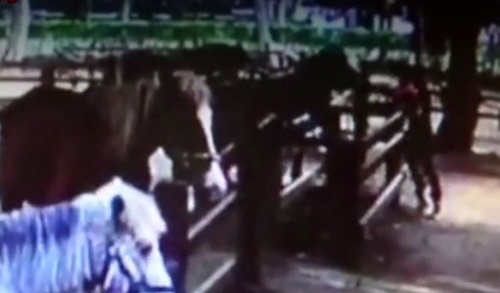 Khoảnh khắc cậu bé bị ngựa cắn - ảnh cắt từ clip. |