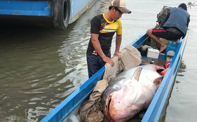 Con cá này được đánh bắt trên biển Hồ Campuchia. Sau đó, ngư dân đã mang về Đồng Tháp bán cho thương lái, với giá 90 triệu đồng.