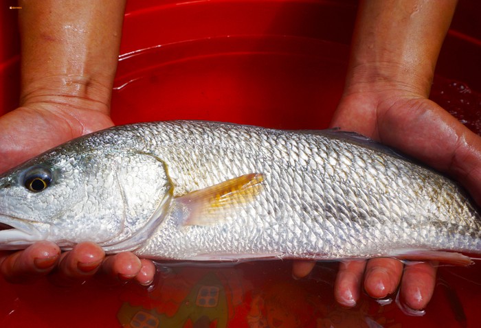 Theo quan sát, con cá dài khoảng 40 cm, nặng gần 1 kg. Khi đưa ra nắng, cá ánh lên màu vàng óng rực rỡ từ đầu đến đuôi, hai bên thân có đường màu bạc chạy dọc, miệng cá màu đỏ tươi.