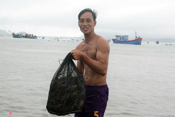Theo chị Ngân, gia đình chị vay khoảng 7 tỉ đồng để nuôi 5.000 con tôm hùm và hàng trăm triệu đồng để nuôi cá nhưng chỉ vớt vát được vài chục con. Hiện gia đình chị ra chỗ nuôi tôm (ngoài đảo) để vớt vát thêm được con nào hay con đó về bán.