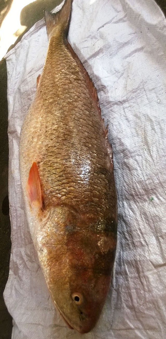 Như tin tức đã đưa trước đó, tối 28/9, trong lúc hành nghề đánh bắt cá trên vùng biển thị xã Sông Cầu (tỉnh Phú Yên), ông Đấu đã bắt được một con cá lạ nặng 9,5 kg, dài khoảng 1 m, toàn thân cá có màu vàng. Sau khi được đưa vào bờ, con cá này đã chết.