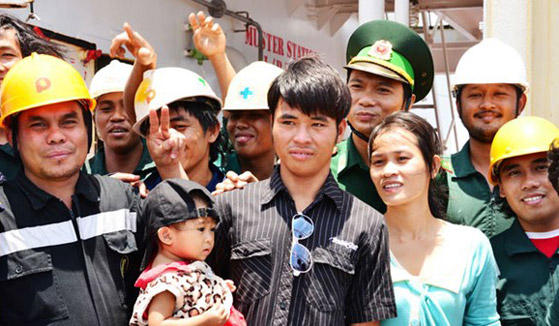 | Thủy thủ đoàn chia vui và tạm biệt ngư dân Việt Nam. |